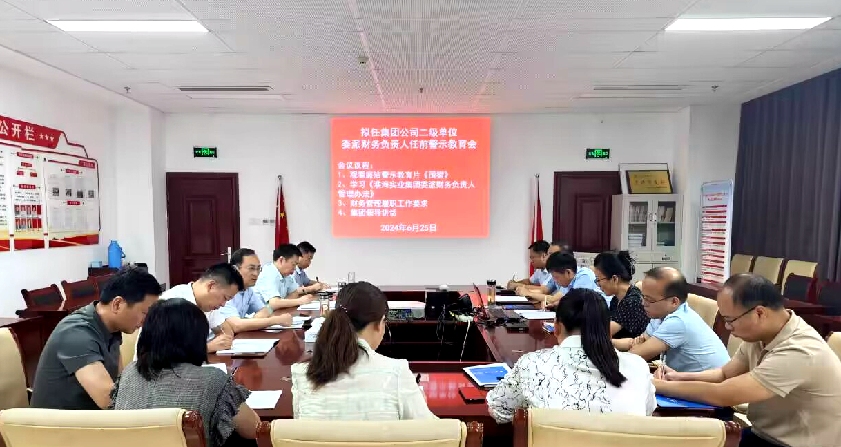 為增強財務(wù)人員廉潔自律意識,營造風清氣正、干事創(chuàng)業(yè)氛圍,6月25日,淮海實業(yè)集團召開擬任二級單位委派財務(wù)負責人任前警示教育會。集團公司黨委委員、副總經(jīng)理羅偉出席會議并講話。會議共同觀看廉潔警示教育片《圍獵》,集中學(xué)習《淮海實業(yè)集團委派財務(wù)負責人管理辦法》和集團機關(guān)效能建設(shè)有關(guān)要求。羅偉強調(diào),要講責任,將責任擺在首位,處理好權(quán)與責、快與穩(wěn)、分與和的關(guān)系,認清職責權(quán)限,保障工作平穩(wěn)過渡,合理管控分歧,...