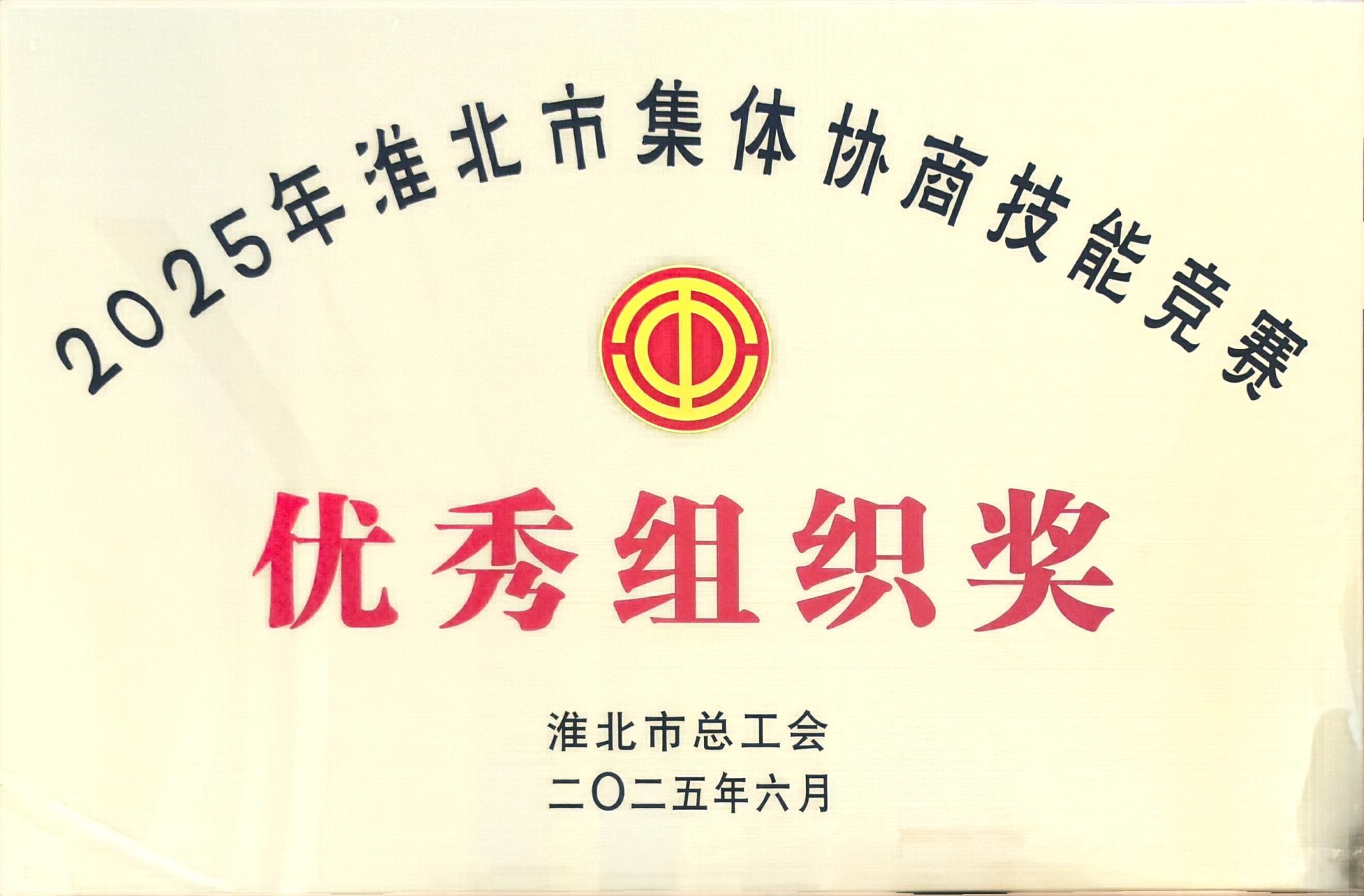 6月18日,淮北市2025年工會(huì)集體協(xié)商技能競(jìng)賽在市職工服務(wù)中心圓滿舉辦。淮北市總工會(huì)黨組成員、副主席李偉出席活動(dòng)。經(jīng)過激烈角逐,集團(tuán)參賽隊(duì)榮獲優(yōu)秀組織獎(jiǎng)。