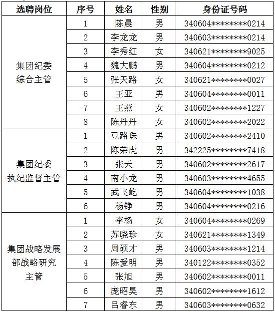 根據淮海實業集團招聘公告中規定的條件,對6月10日17:30前報名人員進行了資格審查,現將通過資格審查人員名單公布如下(排名不分先后):