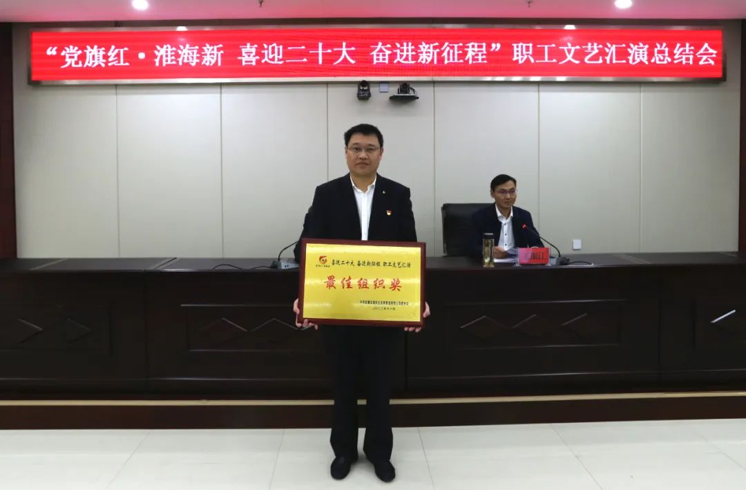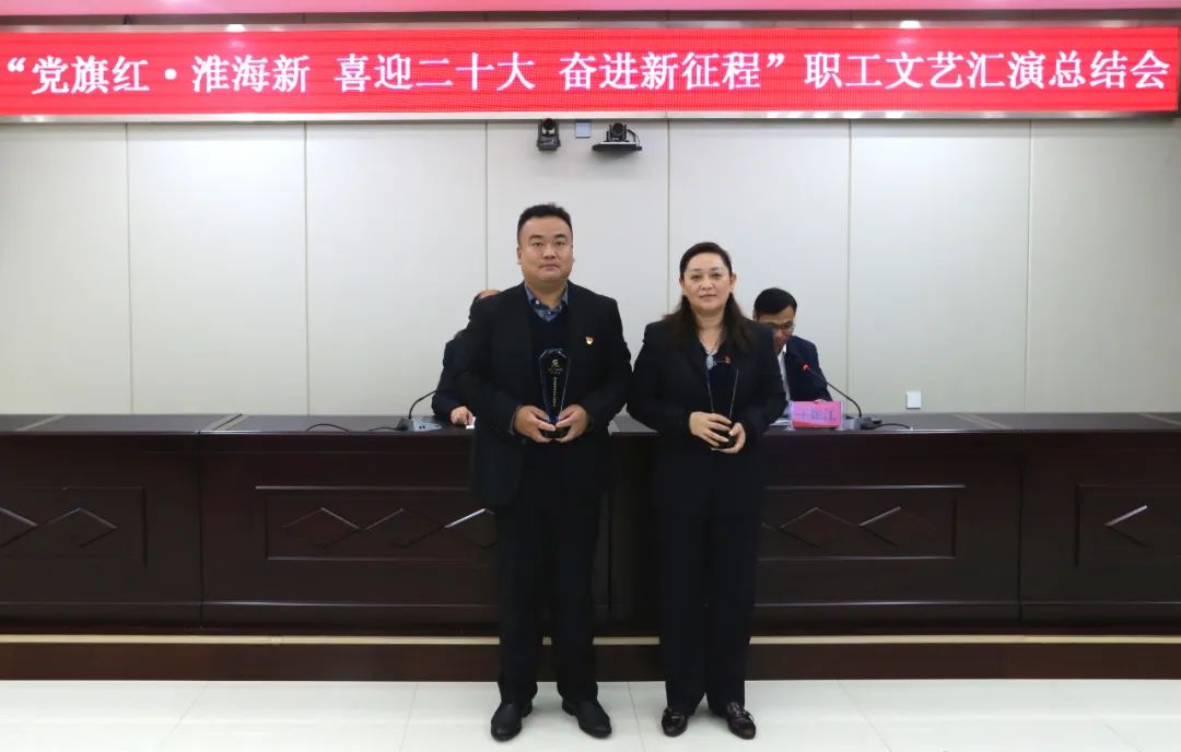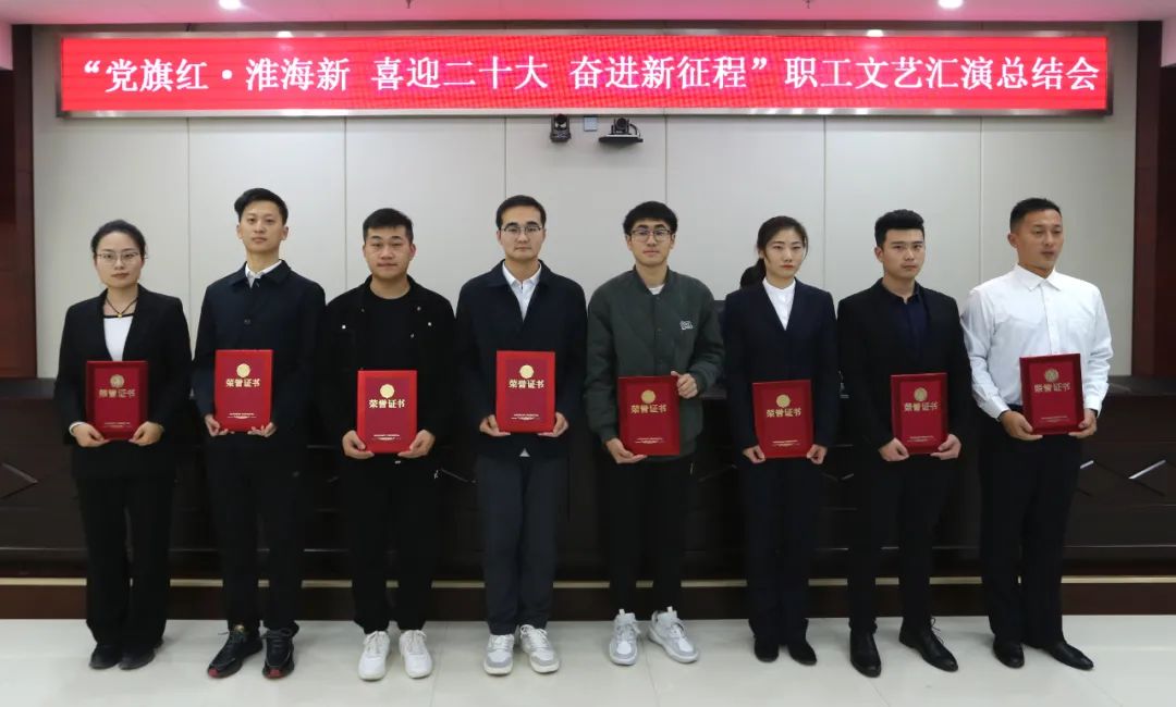 據了解,集團公司黨委副書記、工會主席王振江在會上宣讀了“黨旗紅?淮海新 喜迎二十大 奮進新征程”職工文藝匯演評選出的工會工作積極分子、“我最喜愛的文藝匯演節目”及文藝匯演“最佳組織獎”名單,并舉行了頒獎儀式,總結了此次匯演取得的工作成效。