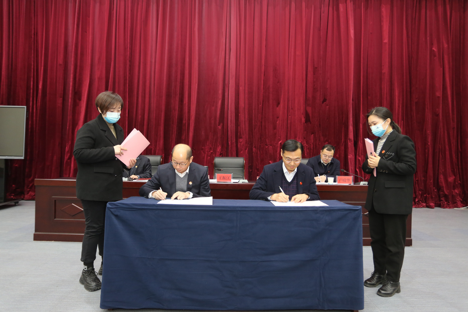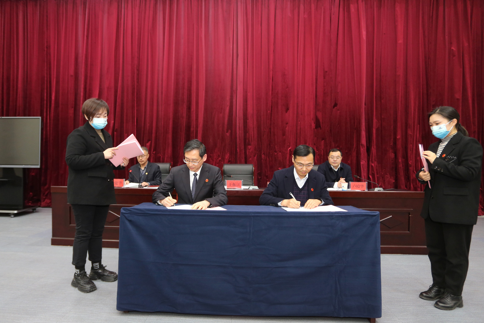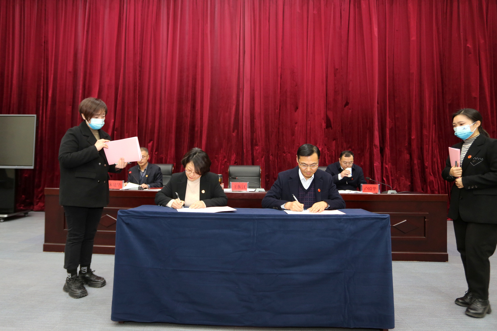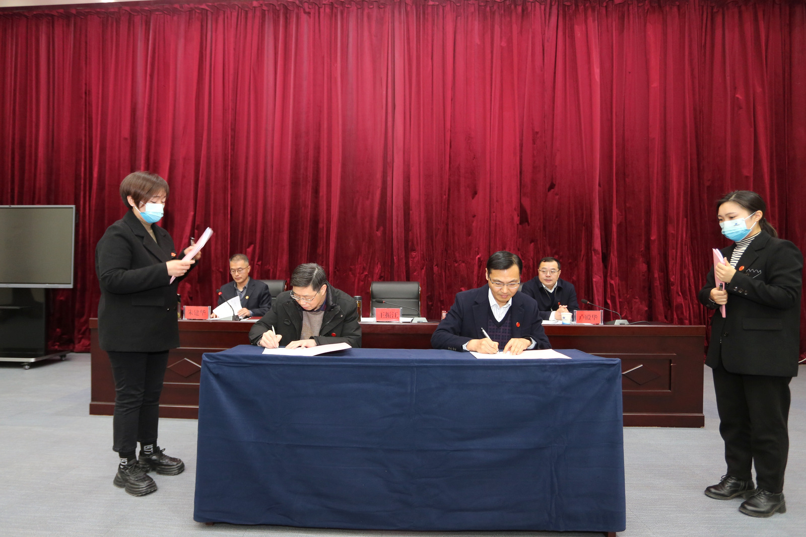 王振江與中勘科技公司等四家單位工會負責人現場簽訂《2023年工會目標責任書》。