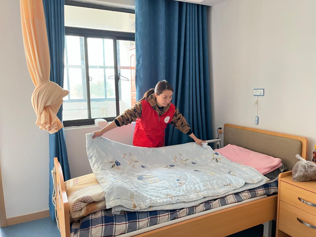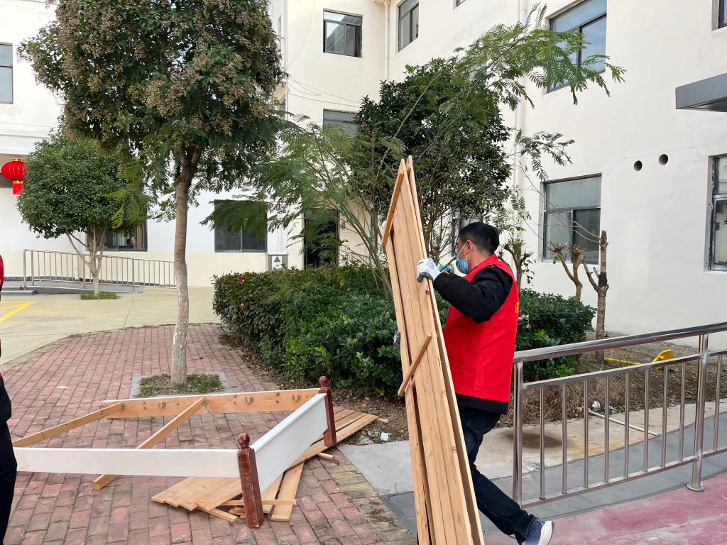 共產(chǎn)黨員張雪燕帶領(lǐng)志愿者們,整理床鋪、擦拭家具、擦洗門窗、掃地拖地,一邊干活、一邊與老人拉起家常,了解生活情況……。“哇,房間整潔了,心情舒適很多。”老人們相互打趣,充滿了歡聲笑語。