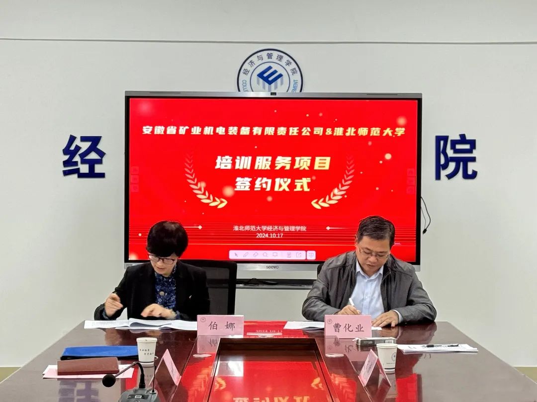 10月17日,安徽礦機、淮北師范大學經濟與管理學院正式簽訂培訓服務項目合作協議,深化校企合作,精準培才育才。淮北師范大學經濟與管理學院院長伯娜,安徽礦機領導班子成員出席簽約儀式。