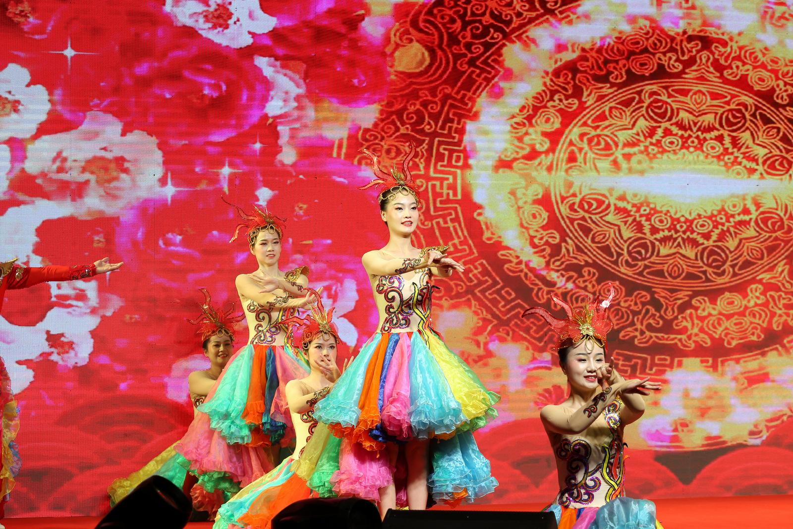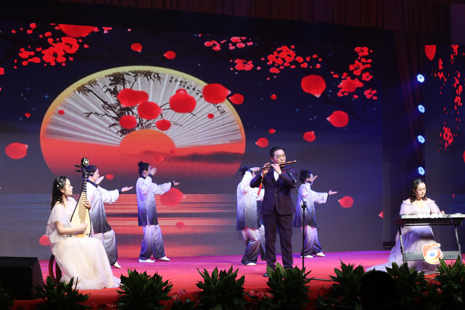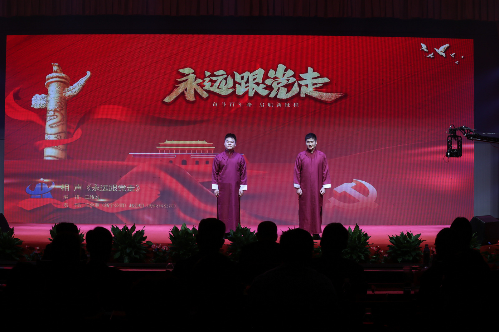 匯演現(xiàn)場,燈光背景交織變換,或像旗幟飄揚(yáng),或像畫卷鋪開,每一次的舞臺變化,都牢牢吸引了觀眾的目光,營造出喜迎黨的二十大勝利召開的濃厚氛圍。