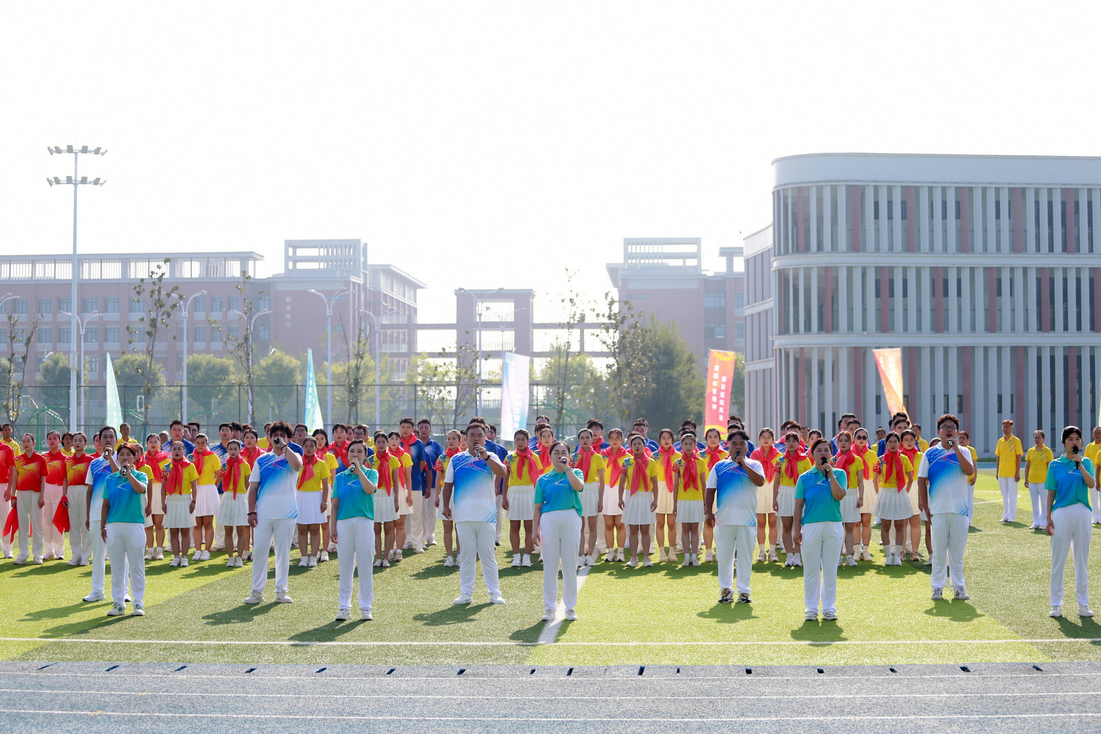 開幕式上,還舉行了文體表演。《飛的更高》表達了站在新起點、邁向新征程的淮海人奮力推進高質量發(fā)展再上新臺階的永恒追求;“八段錦”健身功法表演緩慢柔和圓活連貫、松緊結合動靜相兼,展示了中華傳統(tǒng)文化的獨特魅力;集體舞《心中的旗》展現了永遠聽黨話、感黨恩、跟黨走的不變信念和抓黨建、促發(fā)展、筑和諧的發(fā)展理念。在全場高唱《歌唱祖國》的歌聲中,運動會開幕式圓滿結束。