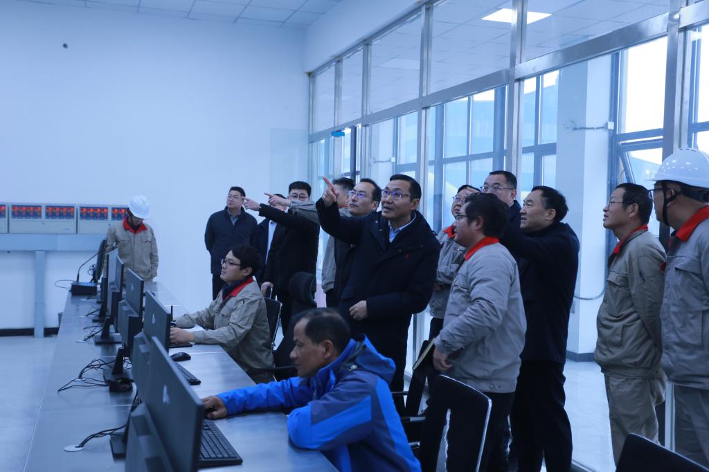 集團公司領導班子一行,首先來到煤矸石脫碳生產現場,詳細了解生產試運行情況,實地走訪中控室,通過視頻察看主要裝備運轉情況,聽取工藝工序介紹。