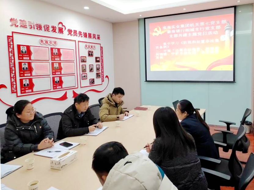 2月20日,集團(tuán)公司機關(guān)第七黨支部聯(lián)合徽商銀行相城支行黨支部開展共建活動,共同學(xué)習(xí)《防范和處置非法集資條例》,并深入社區(qū)、企業(yè)、街道等場所,發(fā)放宣傳手冊,認(rèn)真介紹非法集資基本特征、嚴(yán)重危害、表現(xiàn)形式、常見手段等,詳細(xì)講解防范措施、金融知識等內(nèi)容,提醒市民群眾樹立正確投資理念,謹(jǐn)防上當(dāng)受騙。