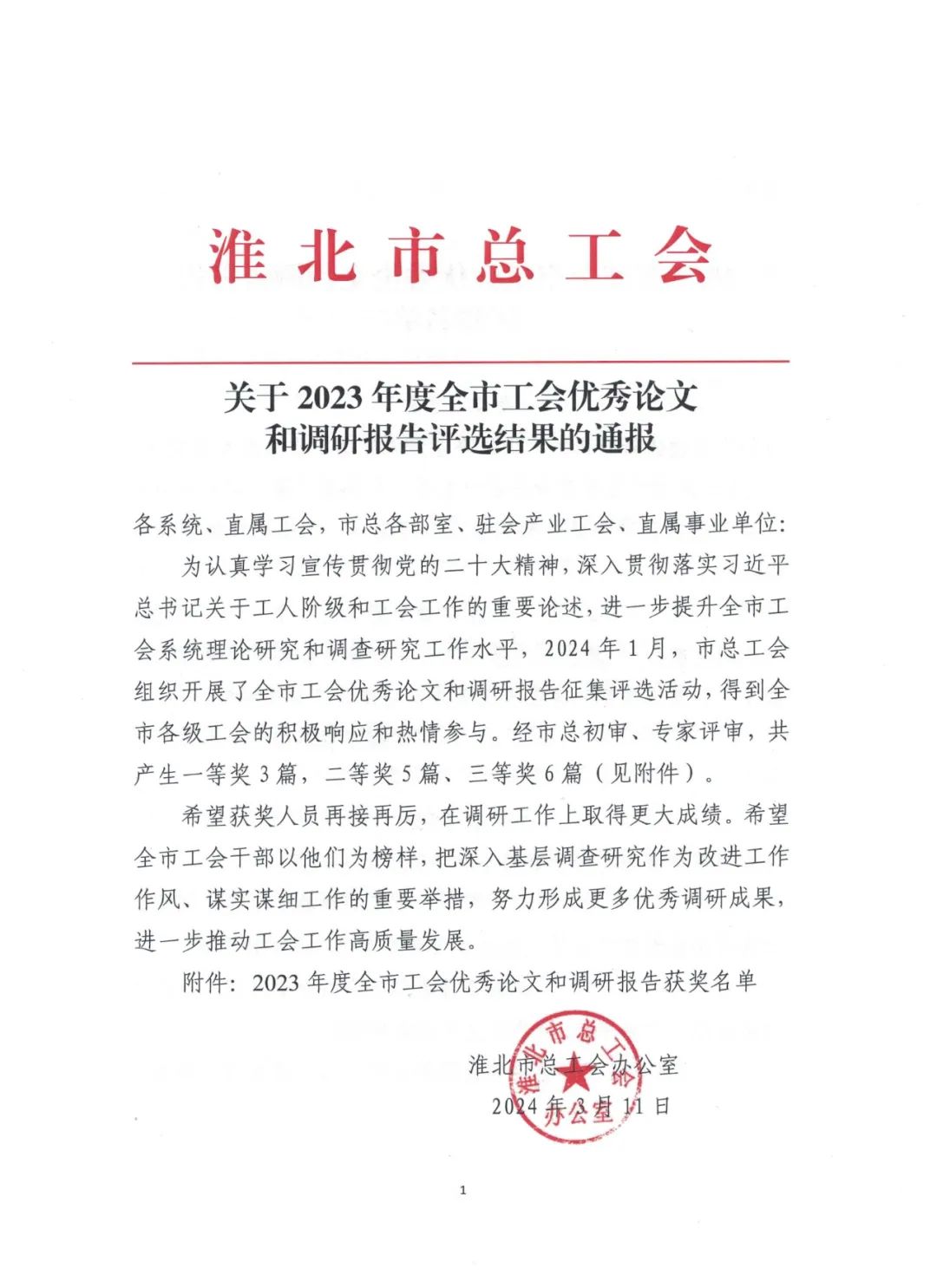 3月12日,筆者了解到,淮海實業集團工會榮獲淮北市2023年度“五型工會”勞動競賽一等獎、全市工會宣傳工作勞動競賽三等獎。《匯聚創新合力賦能高質量發展--淮海實業集團勞模(工匠、職工)創新工作室和技能大師工作室創建調研與思考》《凝聚“她”力量 巾幗譜華章--淮海實業集團女職工工作情況調研報告》兩篇調研報告分獲全市工會優秀論文和調研報告一、二等獎。